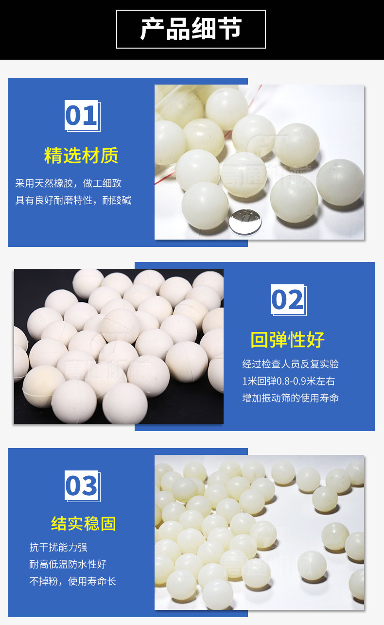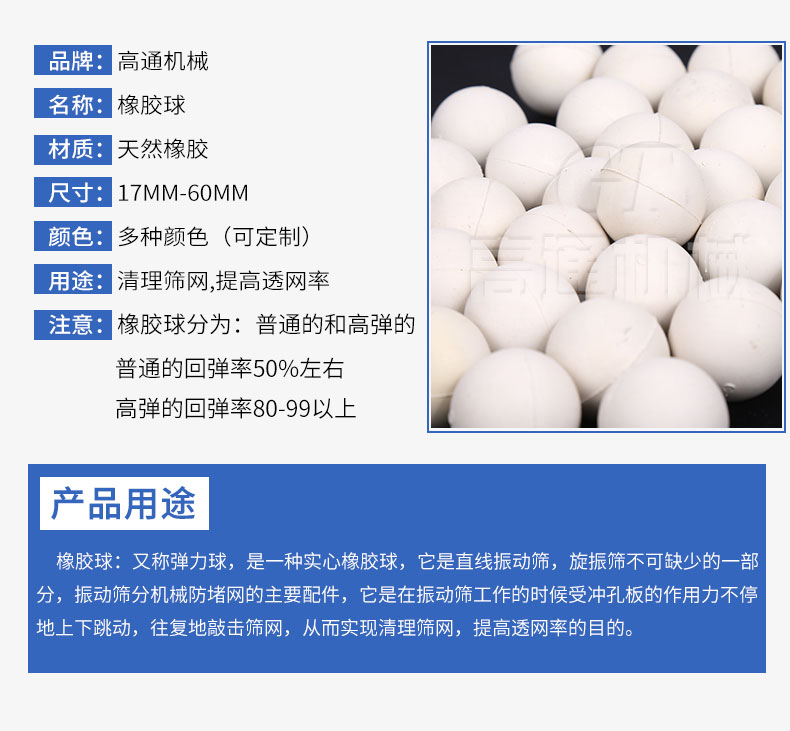 橡膠彈跳球通常適用于一般物料的篩分過程。